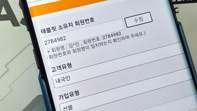 <태블릿 소유자 회원번호> 라는 곳을 입력해야 하는데요.
