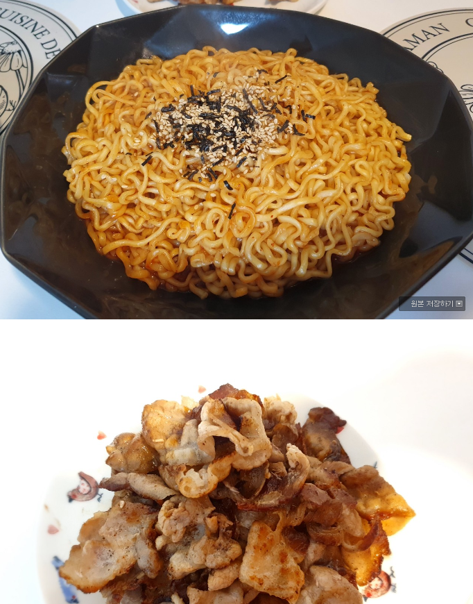 불닭볶음면이 아니라 어떤 조합이라도 삼겹살은 진리 입니다.