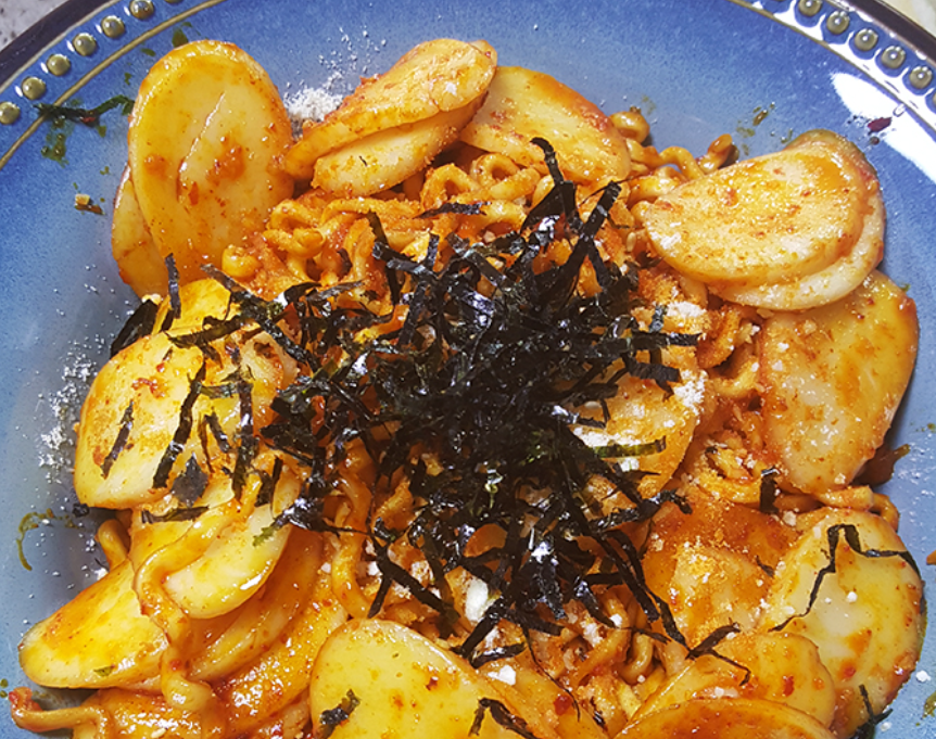 불닭볶음면에 다른 재료를 합쳐서 시너지 효과로 환상의 맛을 내는 조합 입니다.