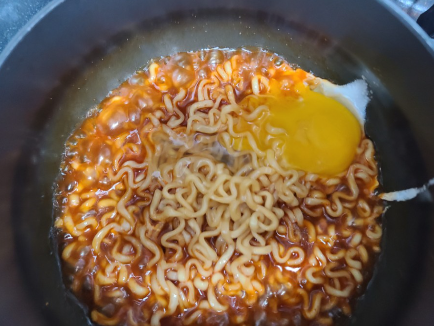 반숙계란으로 불닭볶음면의 매운 맛을 중화시키고,