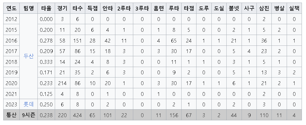 • 첫출장 KBO 2012년 6월23일 대 한화전 대타 출전