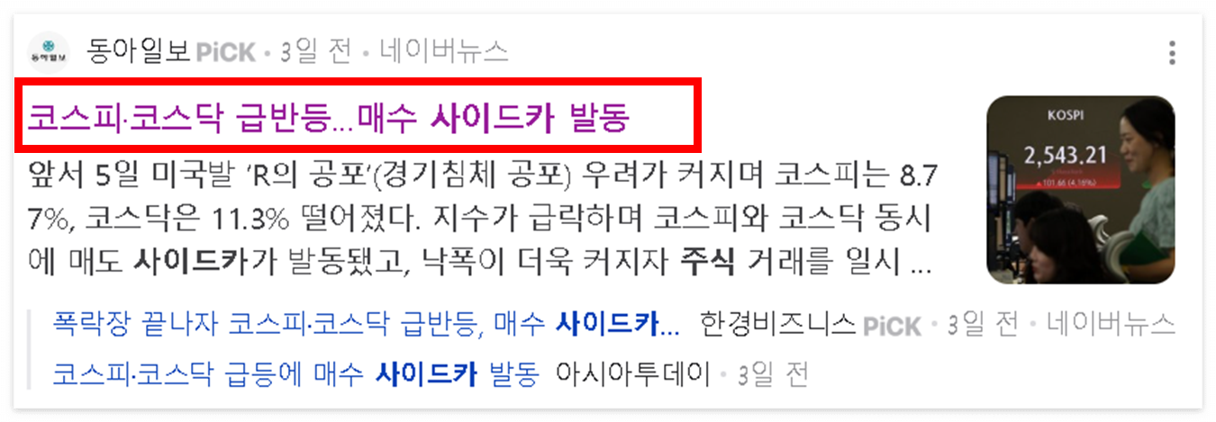 특히나 개인투자를 시작한지 얼마 되지 않는 주린이는 사이드카와 서킷 브레이커에 대한 기본적인 내용은 알고 있어야 되겠지요?