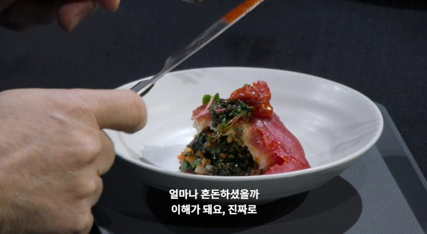 "저는 비빔 인간입니다"라고 언급을 하면서 자신만의 스타일로 재해석한 참치회 비빔밥을 선보였습니다.
