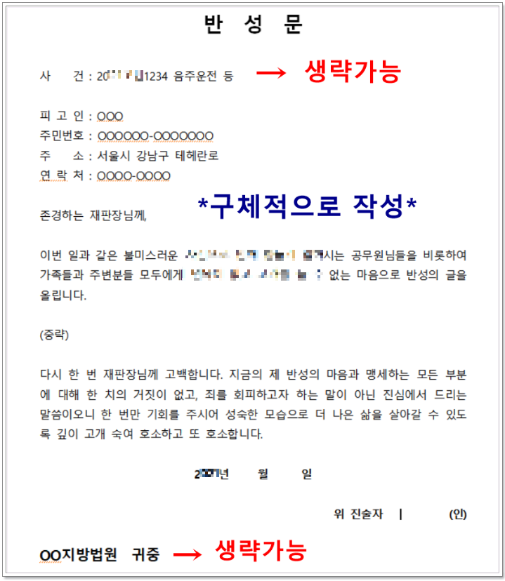 법원에 제출되는 반성문은 공식적인 문서 입니다.