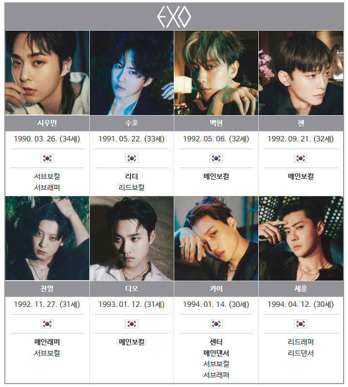 - 소속그룹 EXO, EXO-M, EXO-CBX