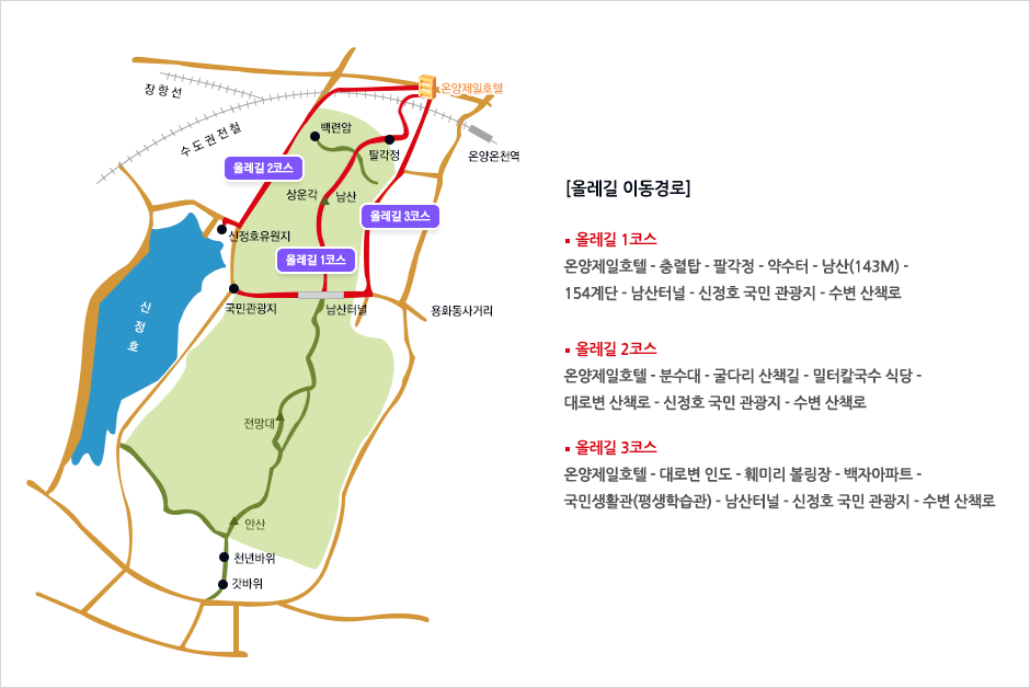 온양제일호텔 앞에 유명한 올레길이 있습니다.