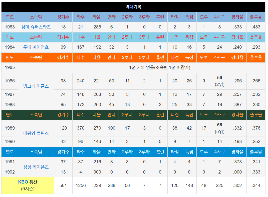 • 드래프트 : 1983년 2차 3라운드 (전체 9번, 삼미 슈퍼스타즈)