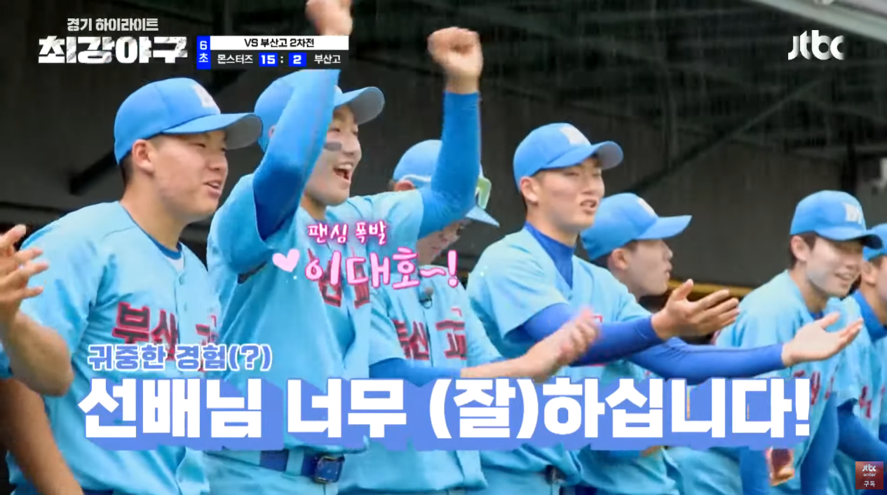 부산고 아이들도 이대호의 4연타석 홈런을 보고, 상대팀인데도 응원을 합니다.