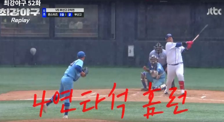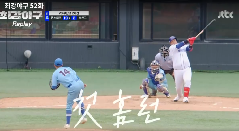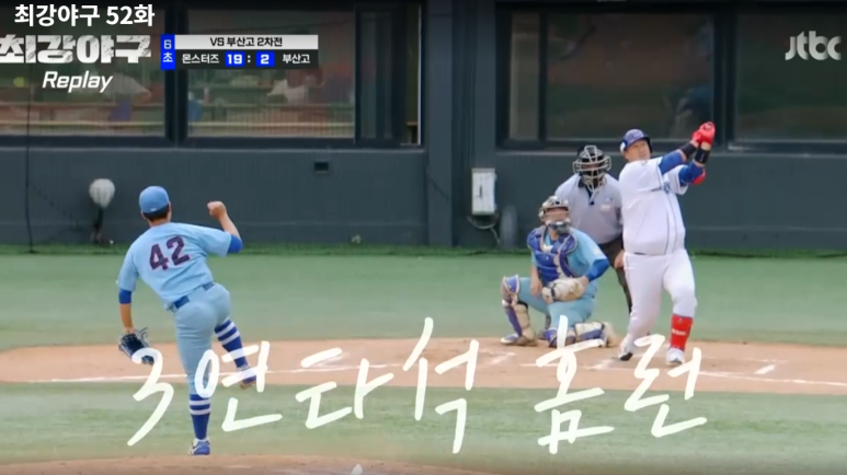 6. 6회, 3연타석 홈런을 날립니다. 투런 홈런, 타석에 들어설때 농담으로 3연타석 홈런을 치겠다고 모든 출연자가 이야기 했는데 농담이 현실이 되었습니다. 투런 홈런으로 3연타석 홈런