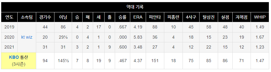 • KBO: kt wiz (2019~2021)