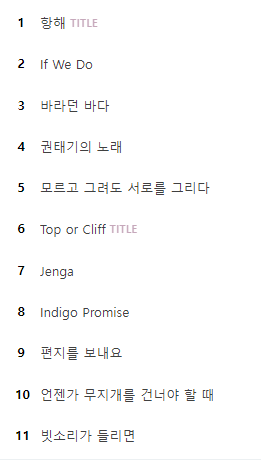 그외에도 '이프 위 두', '바라던 바다', '권태기의 노래' 등이 있습니다.