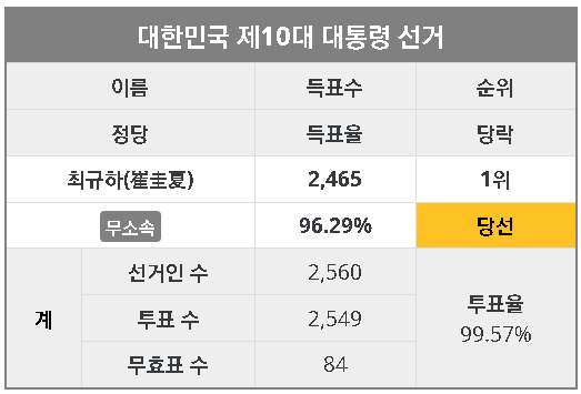 • 최규하가 단독 출마 (단독 입후보)