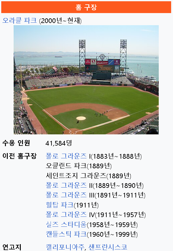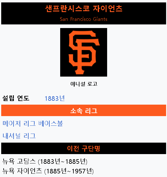 2) 샌프란시스코 자이언츠 팀?