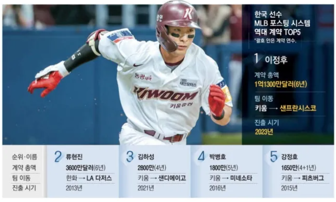 1) 이정후 메이저리그 계약금 및 연봉