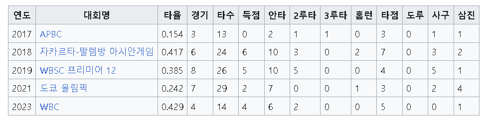 이정후의 국제대회 성적도 화려한데요.